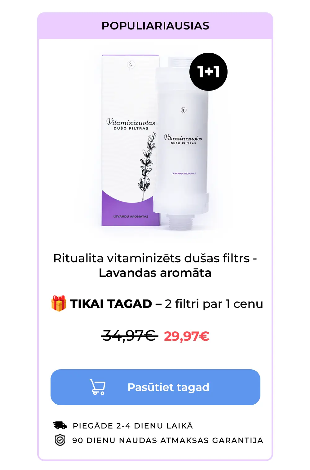 Zibenīgais 1+1 piedāvājums: Pērc 2 Ritualita vitaminizētos dušas filtrus un maksājiet tikai par 1