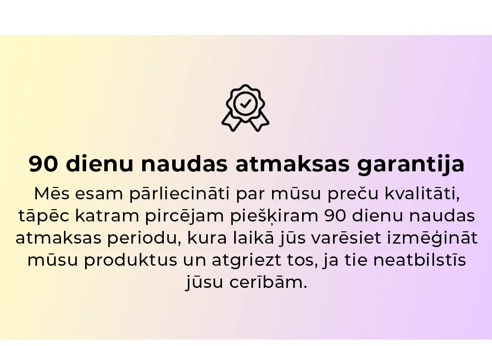 Pasūtām ik pēc pāris mēnešiem, esam ļoti apmierināti ar kvalitāti. Vienmēr ātra piegāde, un bieži pārsteidz ar dāvaniņām – nekad nav bijis problēmu. Ļoti patika vīraki, kurus saņēmām šoreiz. Paldies, iesakām izmēģināt 🥰